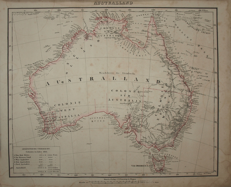 Description: Shows the progress of early discoveries and state borders. Prominent are the great white swathes of unexplored lands in Australia.