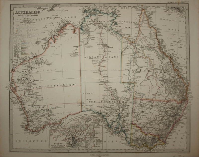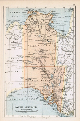 Description: Shows the progress of early discoveries and state borders. Prominent are the great white swathes of unexplored lands in Australia.